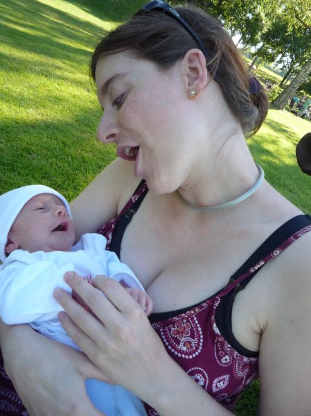 So langsam haben wir uns zu Hause eingewöhnt. Mama geht’s von Tag zu Tag besser und wir turnen, gehen bädele, trinken und winkeln wie die Weltmeister. So langsam werden die ersten Strampler und Bodies zu klein.