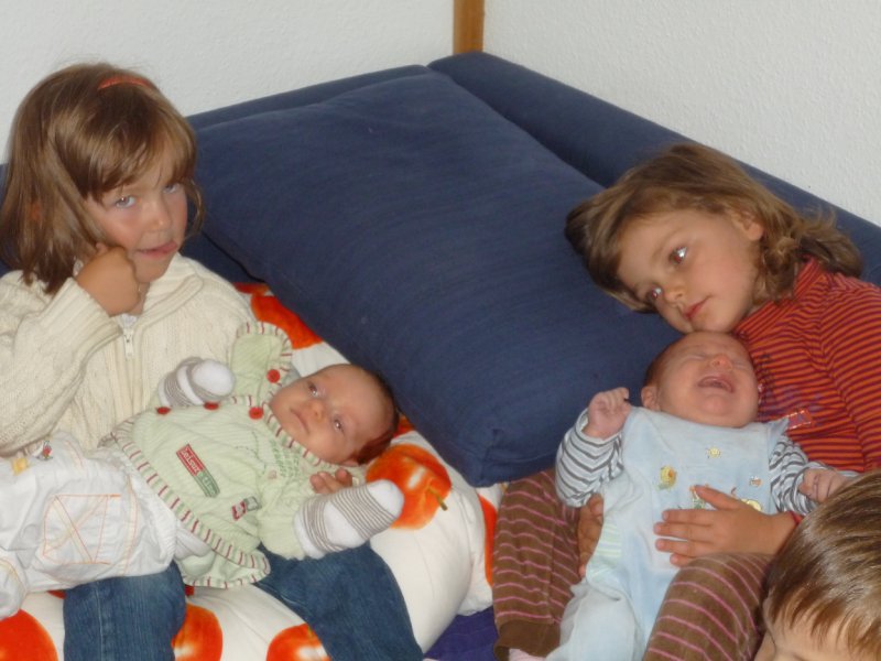 Schaut mal wie groß Emmi in dieser Woche geworden ist – vom ersten bis zum letzten Bild sind nur 6 Tage vergangen. Die Physio scheint zu helfen und die erste Schreiphase scheint abgeschlossen zu sein. Jetzt haben wir ein Zuckerschneckchen, das schon ganz wach alles erkundet, sich am Mobile und am Elumpanten erfreut und munter vor sich hingluckst. Außerdem haben wir die Honis besucht und Emmi hat zum ersten Mal seit dem Krankenhaus Nicla Marie, Sami und Leo wiedergesehen – das war zwar anstrengend, aber sehr lustig.