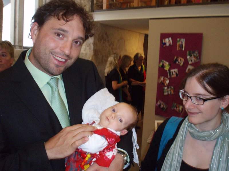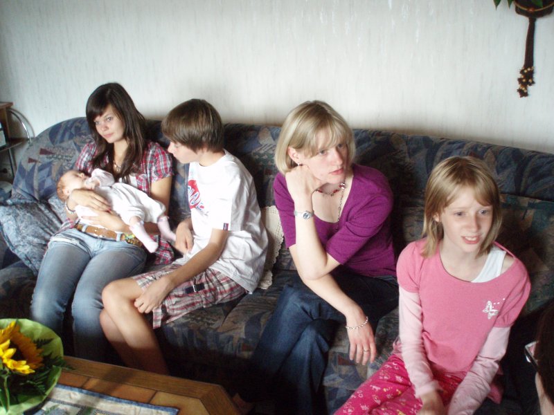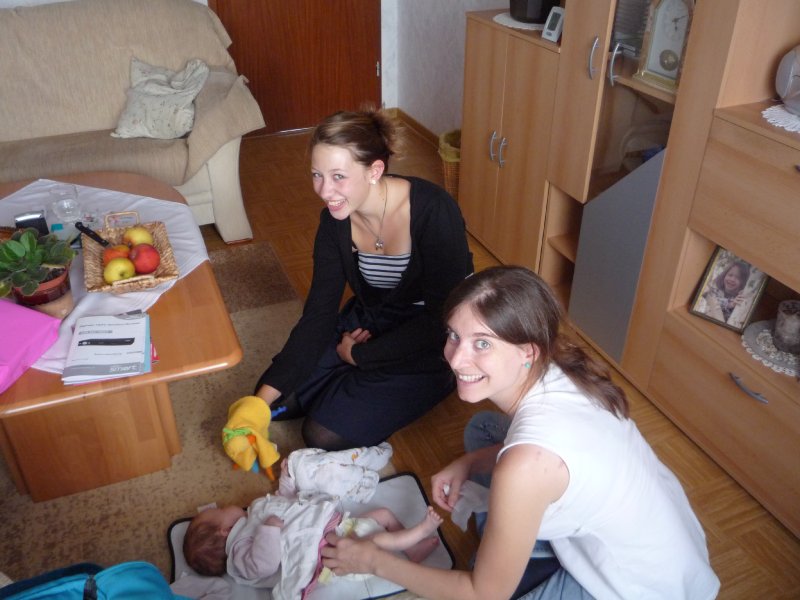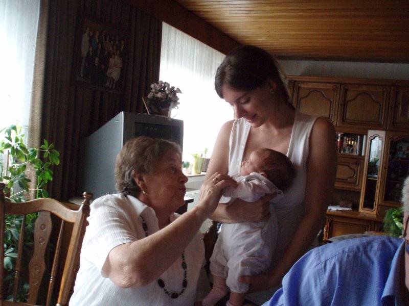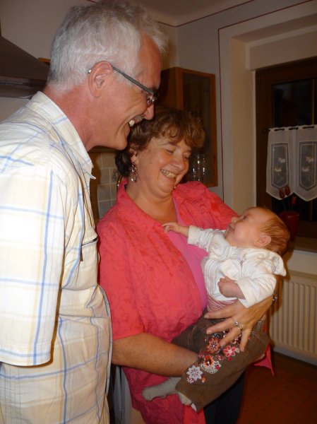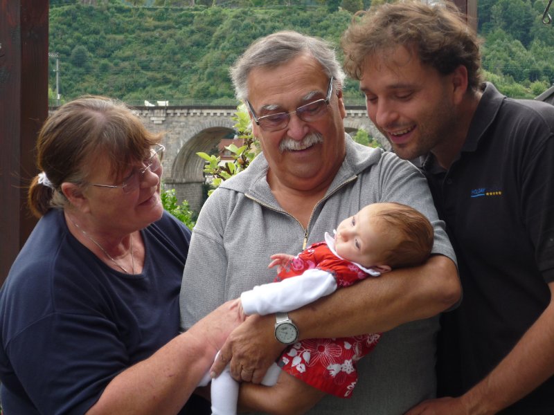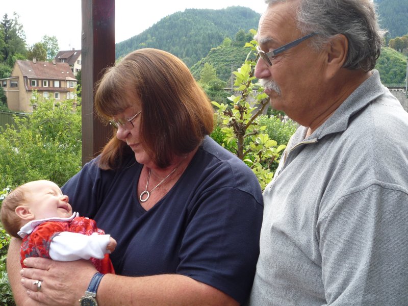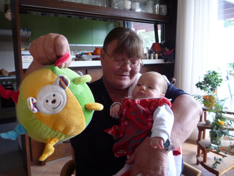 Emmi ist auf großer Reise – und super brav. Lachen, erzählen, schlafen – sie zeigt sich von ihrer besten Seite. Es ist schon so viel passiert: lange Autofahrt, Cousin Thilo und die Godi im Krankenhaus besucht, Alfred Jodokus Quack und Ducki sowie gaaaanz viele andere tolle Spielsachen und Kleidchen geschenkt bekommen und natürlich die Familie “begrüst”. Uroma Friedchens Geburtstag, Opa Edgars Geburtstag und die Hochzeit von Sabine und Pascal – alles sind tolle Feste gewesen. Außerdem haben wir die Zwillinge Anna und Lukas besucht – oh – für Emmi ein ungewohntes Erlebnis, das mit so manch einer Träne endete. Und auf dem Heimweg haben wir natürlich noch bei Oma und Opa in Hornberg angehalten und HALLO gesagt.
