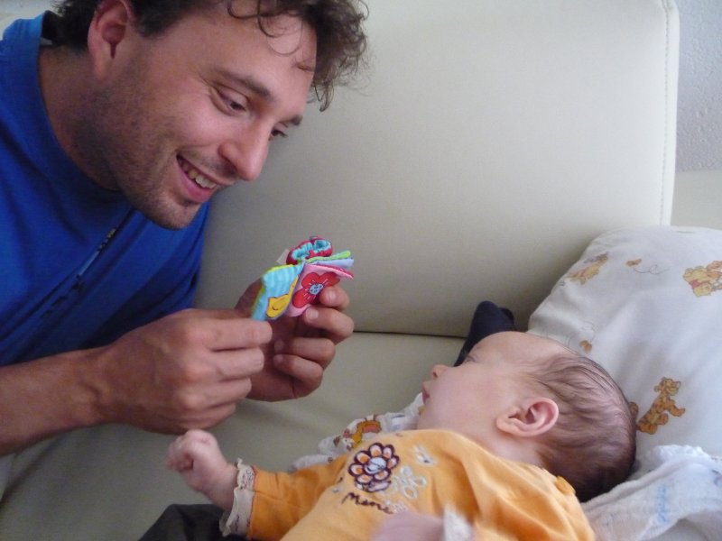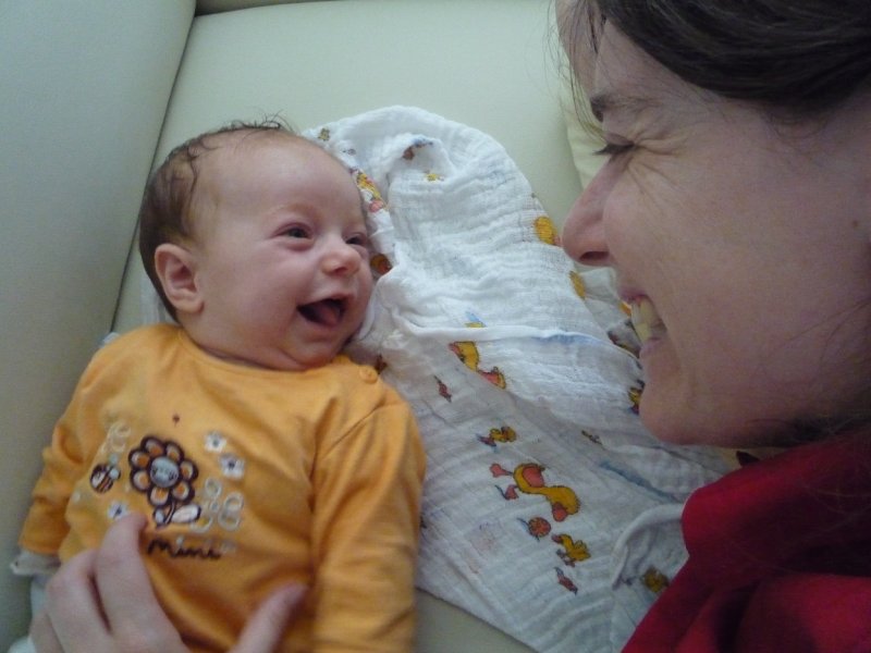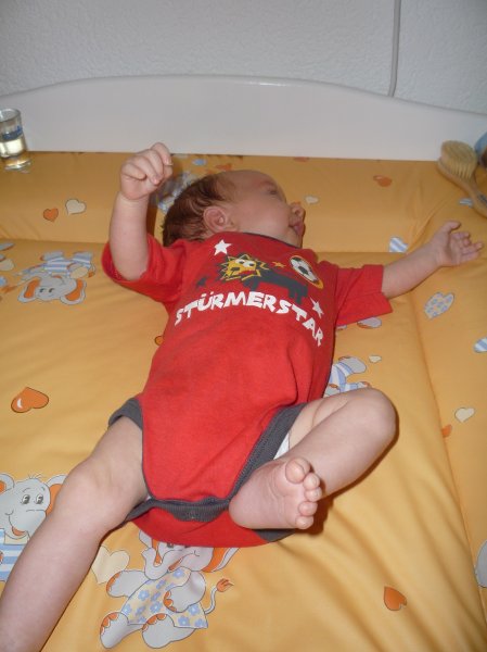 Diese Woche gibt es nicht so viele Fotos. Emmi entwickelt sich zur Nachteule und im Dunkeln gibt’s kein Unterhaltungsprogramm – und entsprechend keine Fotos. Tagsüber sind wir dann soooo müde, dass wir nur wenig spielen und froh sind, wenn’s ein wenig gemütlich zugeht. Wenn wir aber mal wach sind, so ist Emmi putzmunter und lernt so langsam Bücher gucken oder gluckst vor sich hin. Größe 50/56 ist übrigens jetzt eingemottet worden.