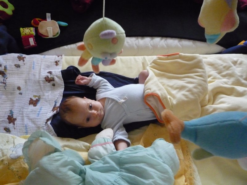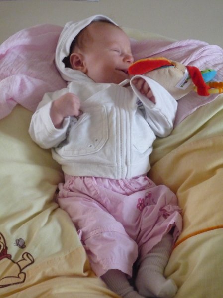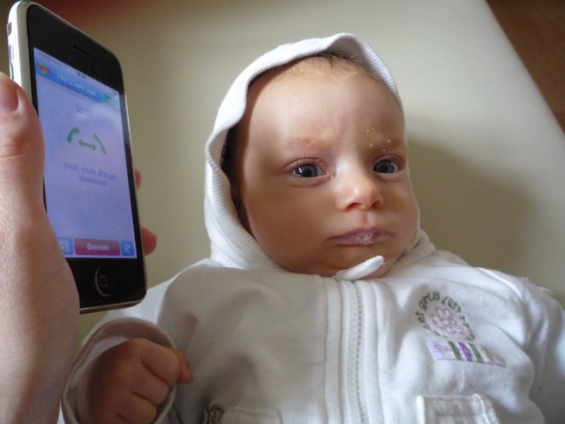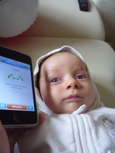 Emmi hat voll den Wachstumsschub hingelegt. Sie lacht jetzt ganz viel, liest Bücher, redet mit dem Mobile (wir glauben mit dem Octopus – wir wissen es aber nicht genau) und freut sich über Fingerspiele. Nur telefonieren – das ist ihr noch suspekt. Da ist Skypen schon “normaler”