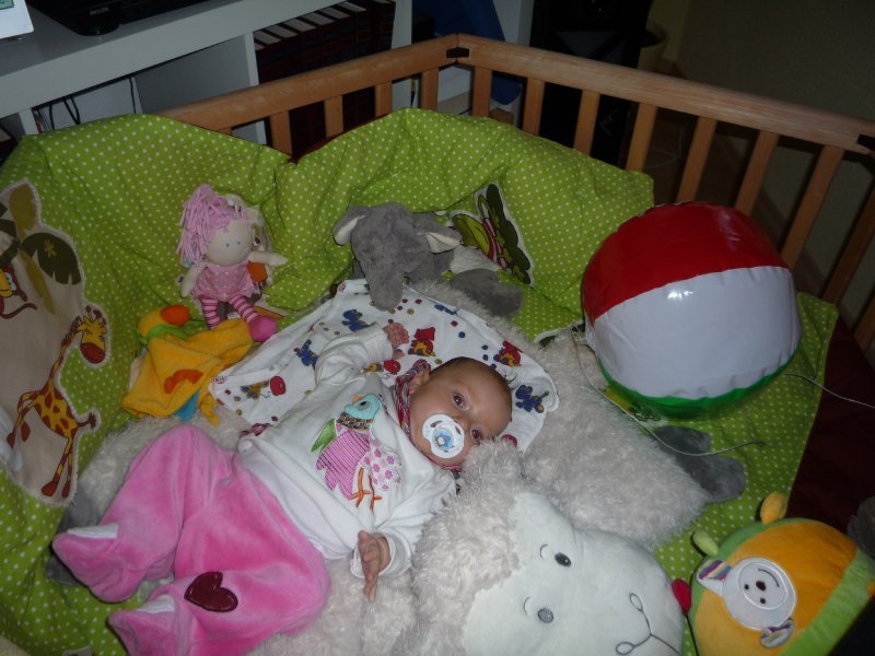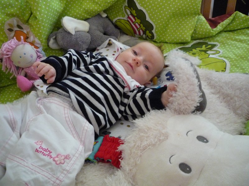 Emilia und Mama haben bewegte 2 Wochen hinter sich: Eingewöhnung im Zwerglihuus und natürlich sofort die erste Erkältung / Bronchitis. Außerdem hat Emmi riesige Fortschritte gemacht: sie greift alles, was ihr zwischen die Finger kommt, sie kuschelt verschmitzt, sie lacht noch herziger, sie erzählt noch mehr und sie kringelt sich, wenn man “Alle meine Entchen” singt. Außerdem trinkt sie nun jeden Tag brav aus dem Fläschen. Emmilienchen: Mama und Papa sind gaaaanz viel stolz auf Dich. Und auf Lena, die die Stinkerparade auf der Interboot durch den Sturm steuern “durfte”, während Mama und Papa einmal alleine unterwegs sein durften.