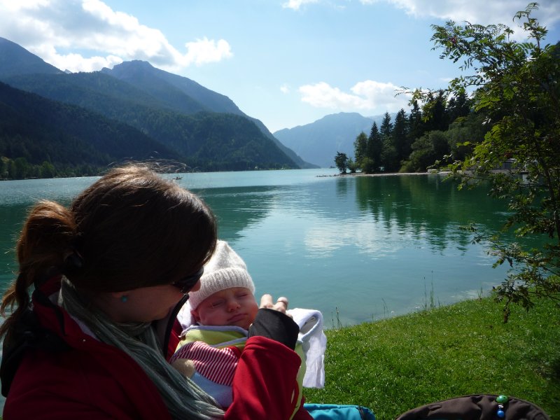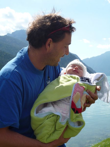 Uff, Familienurlaub ist sooo toll. Mama und Papa haben ganz viel Zeit für Emmi. Zwar werfen sie ihre Pläne noch genau so über den Haufen, wie sie es vor Emmis Geburt getan haben, doch es lohnt sich. Wir haben so tolle Dinge erlebt: Bad Tölz, den Achsensee Wildbad Kreuth, Tegernsee, leckeres Abendessen und und und. Natürlich immer schön relaxt und mit großem Genußfaktor – was man auf den Bildern nur teilweise sieht… Leider haben wir keine Fotos von uns dreien beim Shopping in Salzburg und beim Baden in der Therme Bad Aibling. Doch was sagt uns das? Genau: wir dürfen das noch Mal machen – und dann mit Foti ![]()