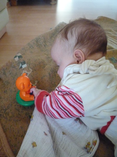 Und schon wieder sooo viel dazugelernt. Erst war’s kühl draußen und Emmi hat zum ersten Mal ihren tollen Thermo-Anzug tragen dürfen. Sie liebt ihn heiß und innig und kuschelt sich ganz viel an ihn. Ansonsten guckt sie alles an, was ihr in die Quere kommt (Hauptsache es ist rot oder gelb), greift alles was ihr zwischen die Finger kommt und freut sich, wenn man ihr was Neues zeigt (Murmelbahn ist suuuuper). Und wer sagt, dass Entenhausen “nur” was für Kinder ist, der täuscht sich. Babys und Erwachsene finden Donald & Co wie man sieht ebenfalls super faszinierend.