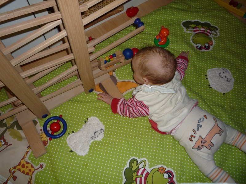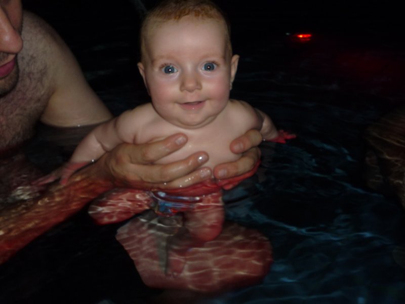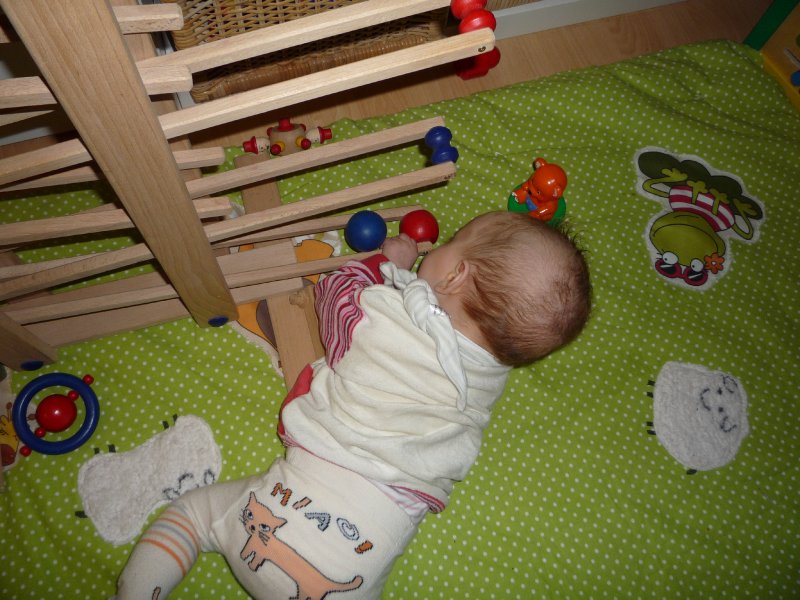 Emmi kann sich drehen!!! Das Rollen vom Rücken auf den Bauch hat sie schon ziemlich perfektioniert. Genau wie das Rufen nach “den Großen”, um wieder zurückgerollt zu werden. Das klappt nämlich noch nicht. Außerdem erkennt sie mittlerweile den Foti und lacht sich häufig halb schief, wenn wir ein Foto von ihr machen wollen. Ja, und wir waren beim Schwimmen in Überlingen. Das war toll: 37 Grad warmes Wasser, rote Lampen und Musik unter Wasser. Emmi hat’s genossen und ist auf Erkundungstour gegangen.