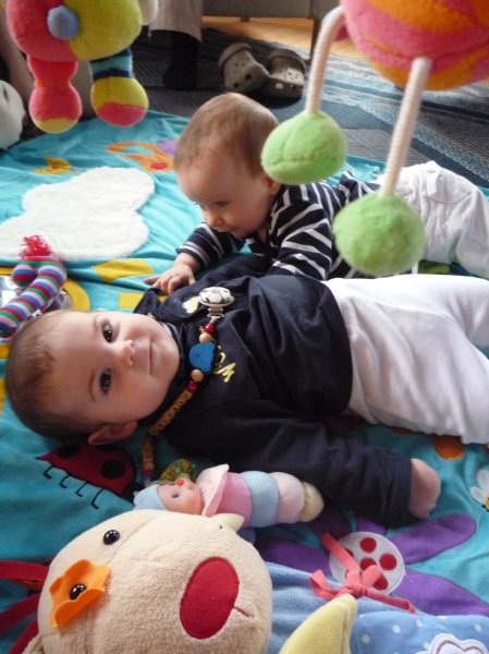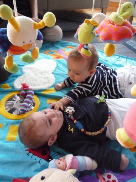 Wir sind ruhig ins neue Jahr gestartet. Emmis Nächte sind gerade nicht die entspanntesten und wir sind froh um jede Minute Ruhe, die wir bekommen können. Doch wie man auf den Bildern sieht: die Tage werden bald ziemlich aktiv sein. Emilia ist durch nichts aufzuhalten – sie möchte alles genau erkunden. Gestern hat sie es zum ersten Mal geschaft, einen Ausflug von der Krabbeldecke unter den Tannenbaum zu machen. Davon gibt’s kein Foto – wir haben die Glaskugeln fallen sehen und mussten schnell einschreiten. Und wir haben seit langem mal wieder Luc besucht. Die beiden haben sich prima verstanden, wobei Luc geduldig Emmis Paddeln “ertragen” hat und – ganz der Gentleman – sein Spielzeug teilte.