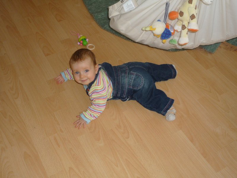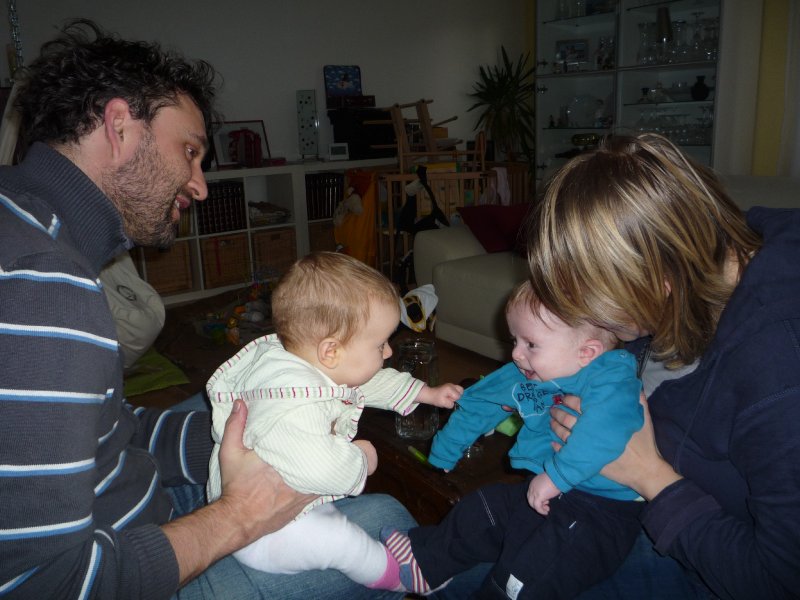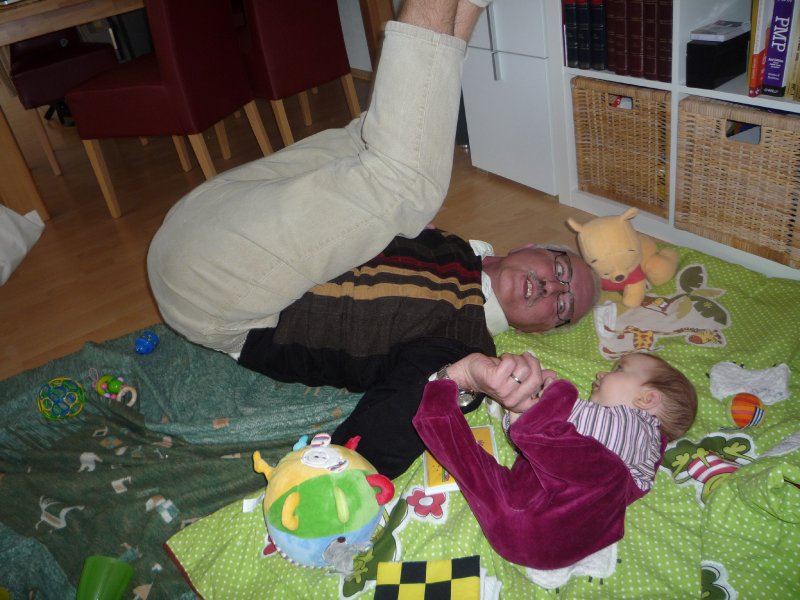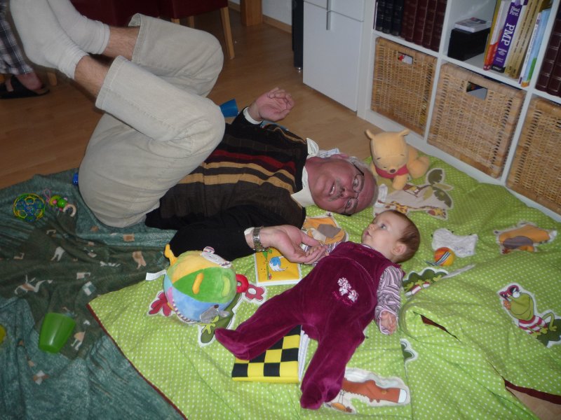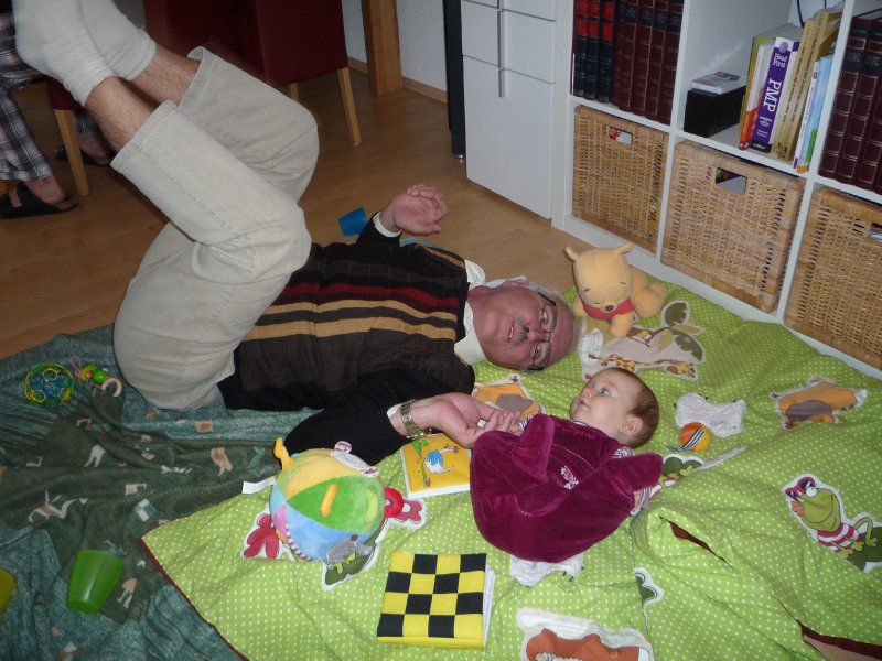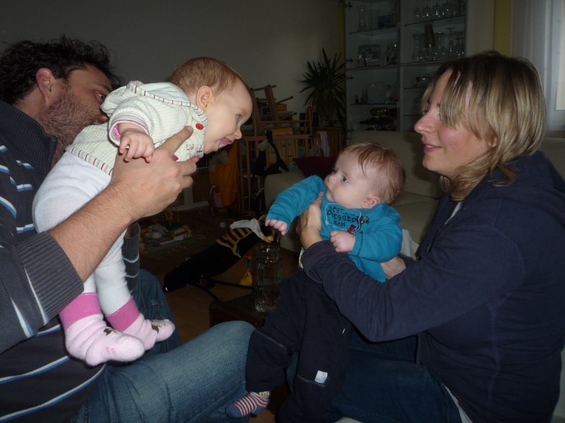 Emilia war letzte Woche so richtig krank – mit 39 Grad Fieber, Husten, Schnupfen und und und… Entsprechend ruhig war unsere Woche bis zum Wochenende: außer Babypiano spielen, schlafen, Schnulli drehen und ein bisschen Spielen auf der Krabbeldecke hat Emmi nichts gemacht. Ihre Schmelzflocken isst sie nur mäßig gerne – doch was Mama freut: Emilia hat nachts keinen Hunger mehr – also gibt’s sie weiter. Am Freitag nachmittag war Oma Mala zu Besuch und über’s Wochenende kamen Oma Monika und Opa Edgar. Das war toll: so viel spielen und auf dem Arm gehalten werden steht sonst nicht auf der Tagesordnung. Und gestern waren wir mit Sabine und Samuel endlich mal wieder spazieren und haben hinterher zusammen gespielt. Emmi freut sich immer wahnsinnig, wenn sie ihre kleinen Freunde trifft. Wenn sie sprechen könnte, würde sie bestimmt sagen: Mama los, ich möchte mit Luc, Samuel und Thilo spielen – oder bring mich einfach ins Zwerglihuus, da kann ich mit den beiden Emilies und Elena um die Wette paddeln ![]()