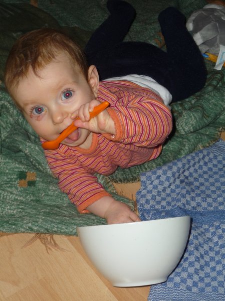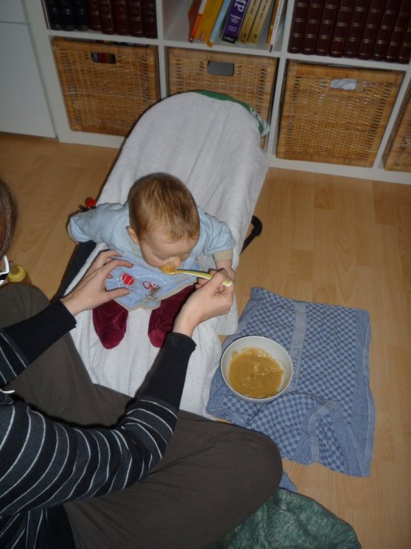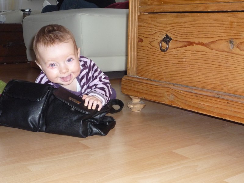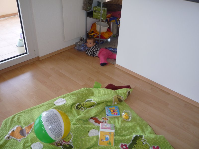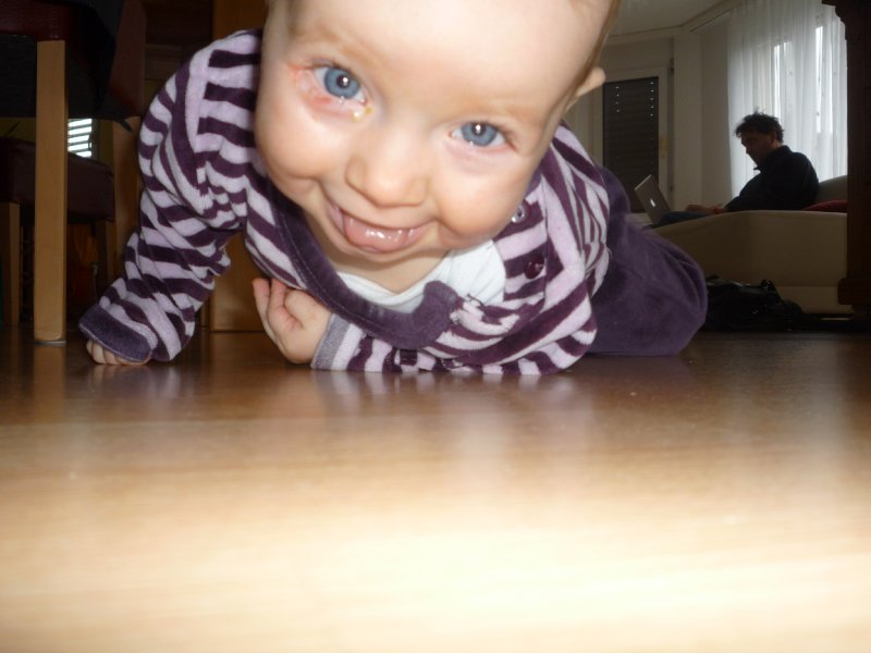 Unsere letzte Woche war ziemlich stressig. Emmi macht aber ganz toll mit und findet es zum Glück nicht mehr langweilig, im Autositz zu sitzen. Wenn wir zu Hause sind, erkundet sie weiterhin ganz toll unsere Wohnung, spielt mit allem, was ihr in die Quere kommt und wenn sie keine Lust mehr hat, streckt sie seit neuestem ihre Händchen aus. Ausserdem verputzt sie Unmengen an Brei. Mittlerweile robbt sie mir sogar hinterher zu ihrer Wippe, wenn ich ihr den Brei zeige. Und dann heisst’s: ganz schnell die Löffelmaschinerie anwerfen – sonst gibt’s lautstarken Protest.