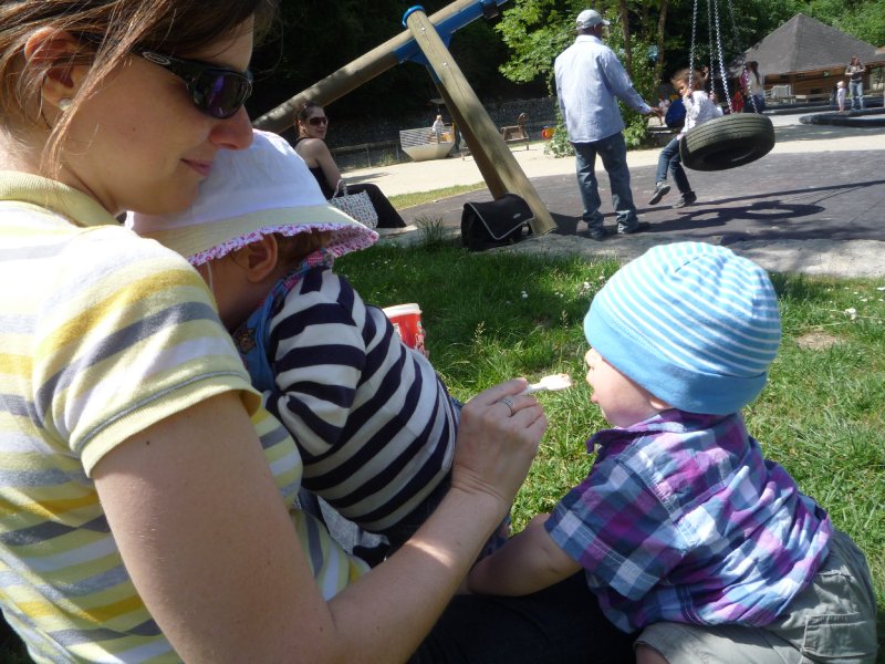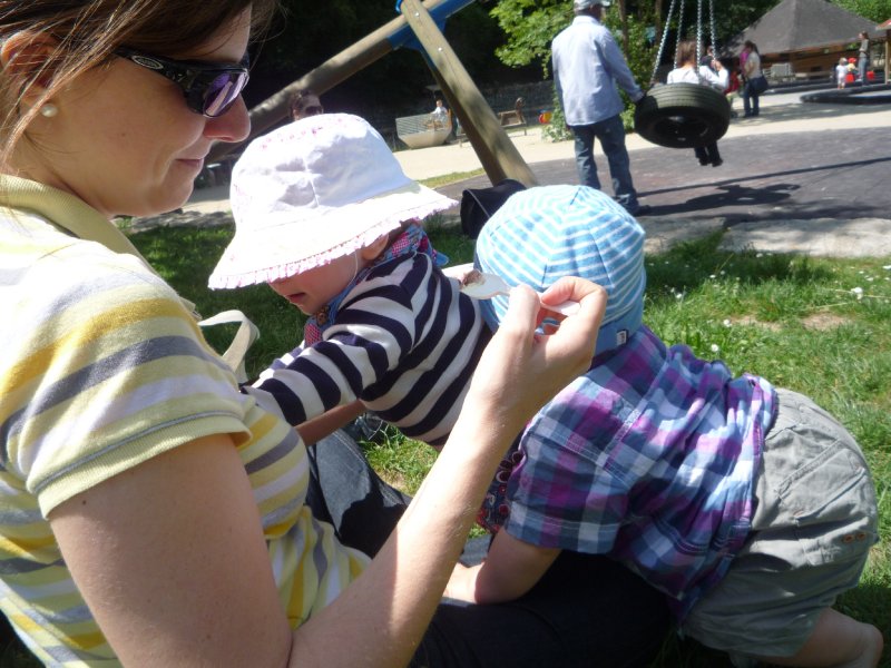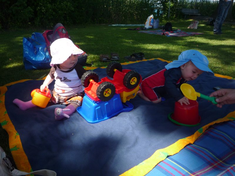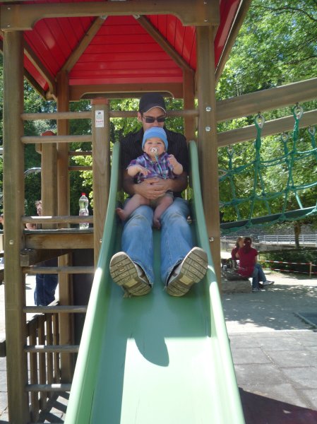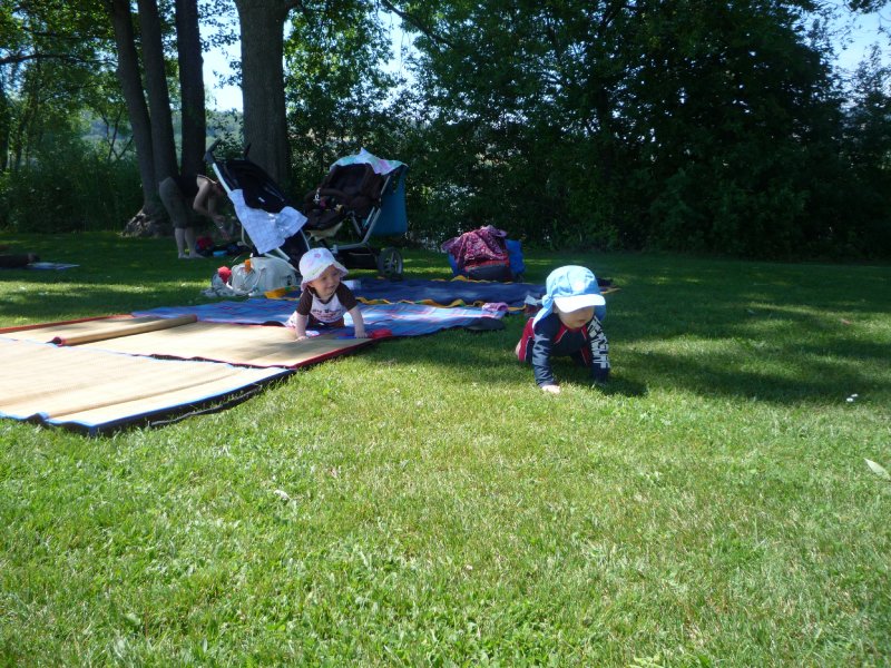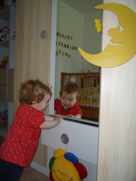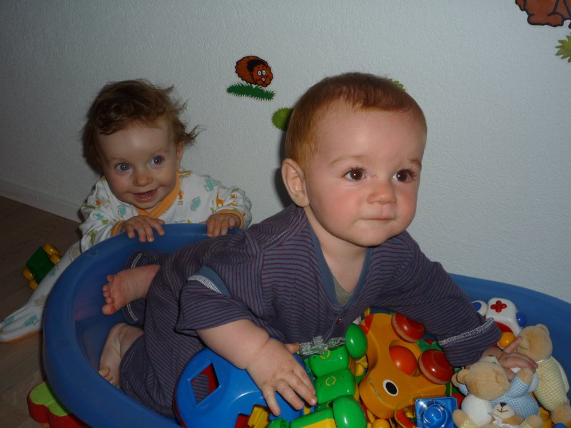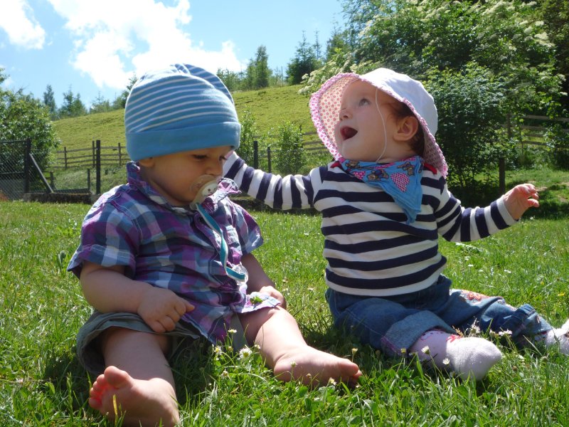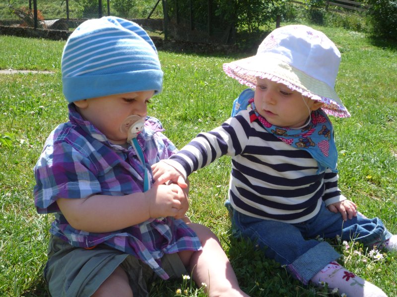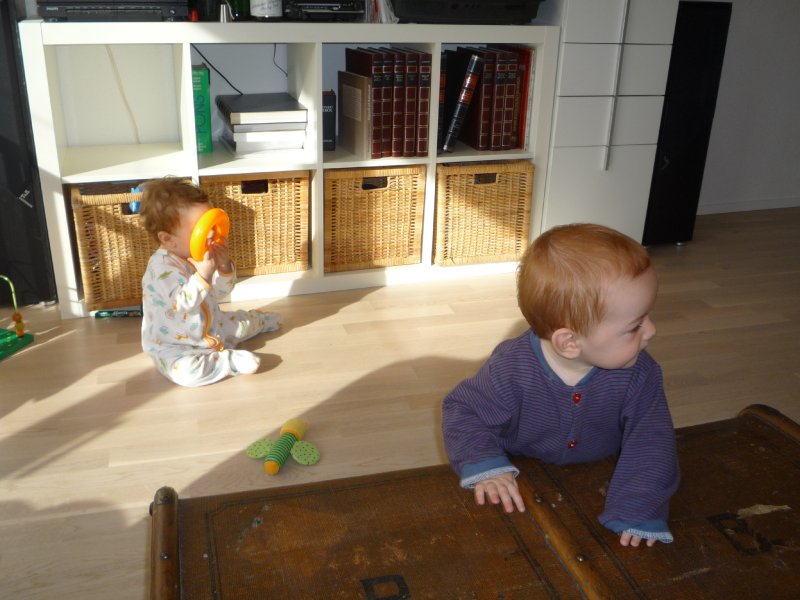 Uuuiii, wir haben es gerade lustig: Emmi erforscht alles und jedes. Sie liebt ihr Kinderzimmer, den Spiegel, das Laufen, das Klettern – und natürlich das Essen. Brei ist gar nicht mehr so toll – lieber mag sie Lasagne oder Grillfleisch… Und wir haben uns riesig über unseren Besuch gefreut: erst waren Mini-Thilo-Freund, Godi und Onkel Andreas da – und gestern Oma Mala und Opa Willhelm. Emmi mag es immer, wenn sie im Mittelpunkt steht.