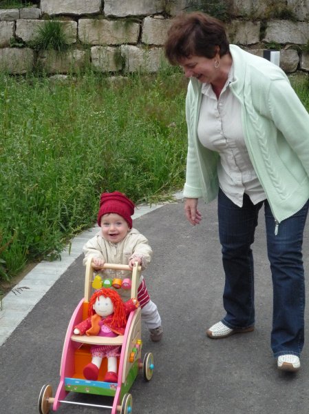Uuuiiiii, Spielalarm. Karin und Stef haben mit Emmi gespielt, Sandra war zu Besuch und nun ist Oma Monika eine Woche Spieloma. Und Oma Mala und Opa Wilhelm haben wir gestern auch besucht. So toll, wenn Emmi immer Mützchen und Schühchen schnappen darf und “attaattta” gehen kann.