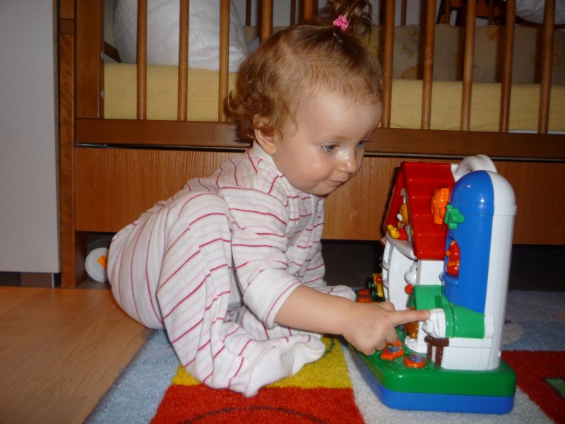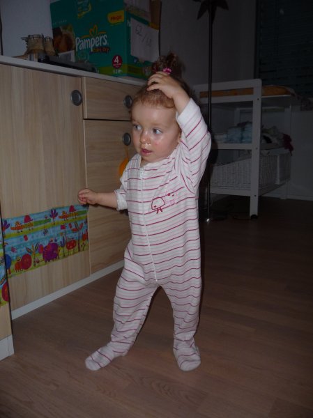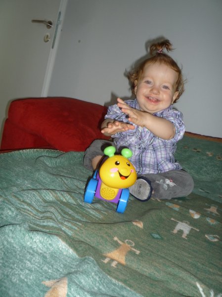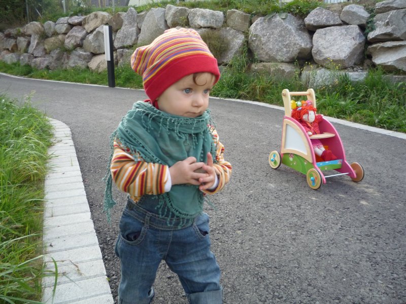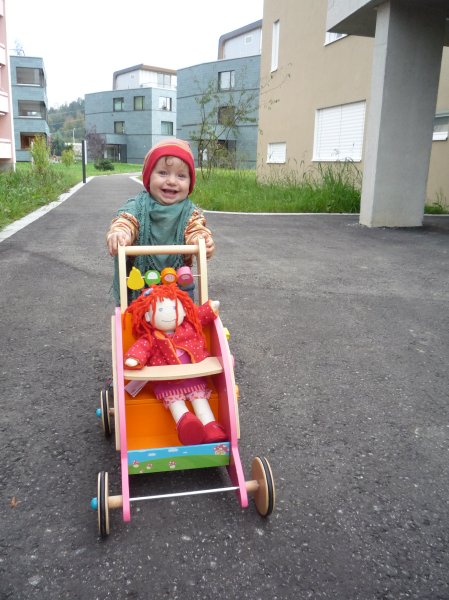 Diese Woche geht es unserem kleinen Goldschatz ausgezeichnet. Emilia ist stets bestens gelaunt. Sie will jetzt immer dabei sein, wenn wir etwas machen, und uns dabei helfen. Die Küche ist dabei ihr liebstes Betätigungsfeld (und beim Badputzen wäre sie auch vorne dabei, aber das geht natürlich nicht). Und weil man nach getaner Arbeit auch mal auf den Spielplatz vorbeischauen darf, werden wir regelmässig in Grund und Boden gelacht…