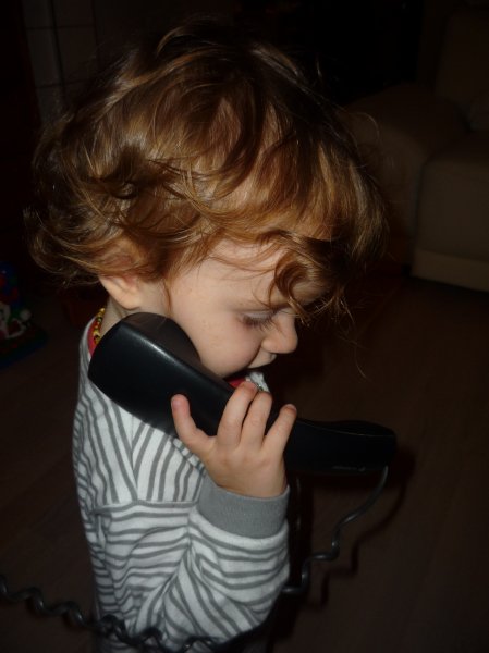 Unsere Tochter wird von Woche zu Woche eine bessere Telefoniererin – richtig herzig zu sehen, wenn sie ein Wort sagen kann, dass sie ins Telefonat einbringen kann. Ob passend oder nicht, das überlassen wir dem Telefonpartner zu entscheiden ![]()