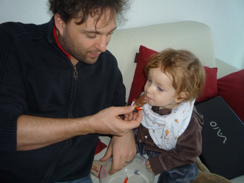 Ansonsten haben wir den ersten Nikolaus von der Lampe abgehangen und fasziniert festgestellt, dass da Schokolade drin ist. Natürlich hat Emmi sofort ihr obiligatorisches “nochmal” Zeichen gemacht – und dazu “nochmal” gesagt. Und unser Hausflur sowie der Keller wurden von unseren Vermietern geschmückt. Ab sofort heisst es doppelt und dreifach aufpassen – aber auch doppelt und dreifach über die Deko freuen.