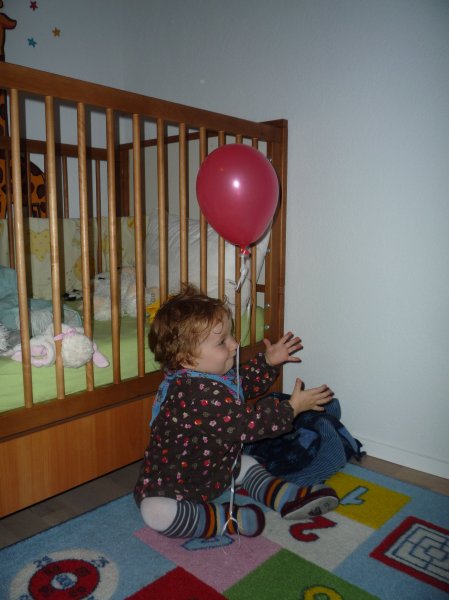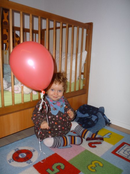 Uuuuiiii, gleich 2 Überraschungen gab es am Samstag: einen Luftballon und ein Fotobuch von der Oma Monika. Da war es gleich einmal Essig mit früh schlafen ![]()
