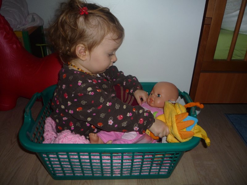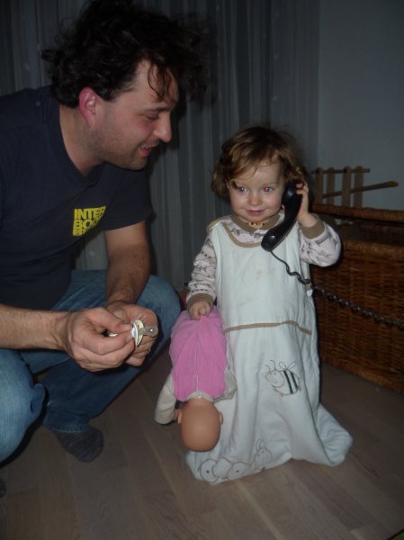 Paulinchen ist nun definitiv zum 2. Kind geworden und hat ein eigenes Bett bekommen. Und wie es sich für grosse Schwestern gehört: sie probieren alles aus, was ihre kleinen Gefährten “besitzen”. Eine kleine Warnung an alle, die uns anrufen: Emilia möchte nun immer selbst auch telefonieren und verwechselt das Telefon mit Skype. Sie zeigt dem Telefonhörer was sie gerade interessiert und erwartet Kommentare. Also: lasst Eurer Phantasie freien Lauf. ![]()