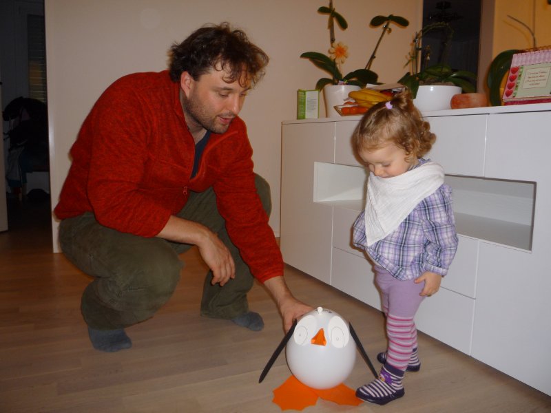 Emilia ist kein Baby mehr und ist jetzt bei den grossen Kindern in der Krippe. Dort hat Sie gleich einen tollen Pinguin gebastelt und ganz viel gemalt.