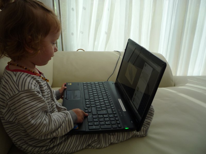 Und was Emmi angeht: sie kann jetzt alleine telefonieren – wie man sieht. Und sie versteht langsam den Unterschied zwischen Tablet und Laptop (Emiliy sei dank. Emilia ist Emilys grösster Fan und schaut sich stundenlang die Fotos von ihr an)