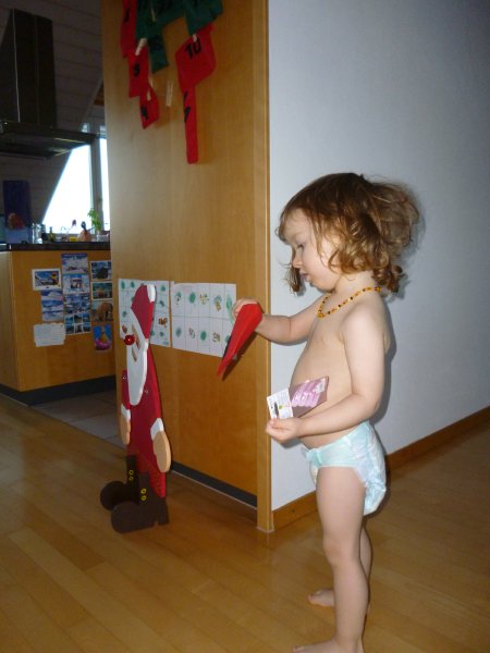 Viel Zeit zum Verschnaufen haben wir nicht: der Advent und der Schnee stehen förmlich vor der Türe. Also heisst es: Christstollen backen, Skifahren (auf Glasuntersetzer), Schneemänner bauen – und jeden Tag eine grosse Freude mit dem Adventskalender. LIEBEN DANK an Lena und Marc für die tolle Idee. Emmi strahlt riesig, wenn sie ein Säckchen öffnen darf – und die Haarspängeli von hüt waren “cool”.