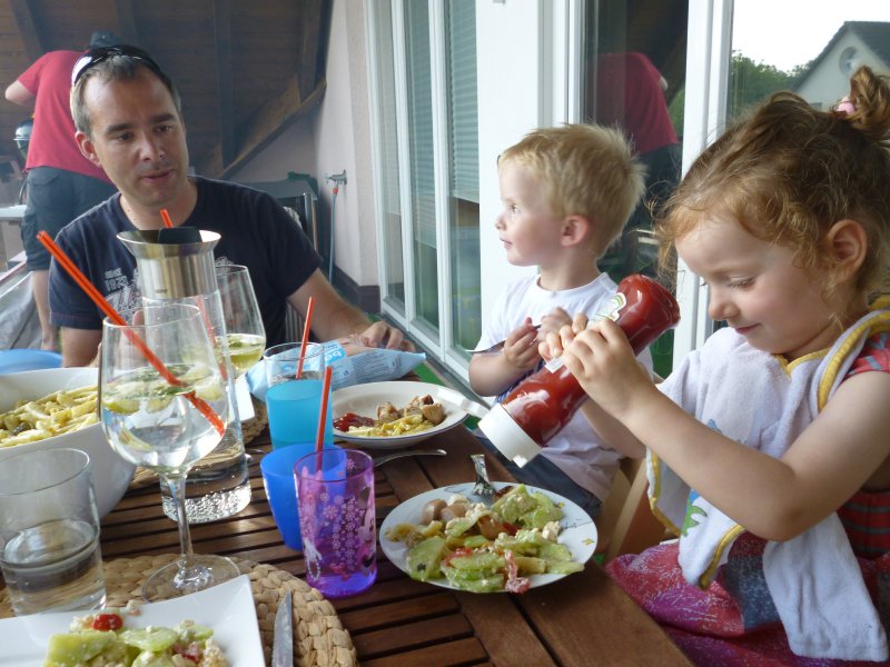 Mama und dem Mini-Baby geht`s eher so lala. Wir freuen uns gerade eher über Ruhe, hinlegen und nach wie vor über viel Gurken-Feta-Salat.