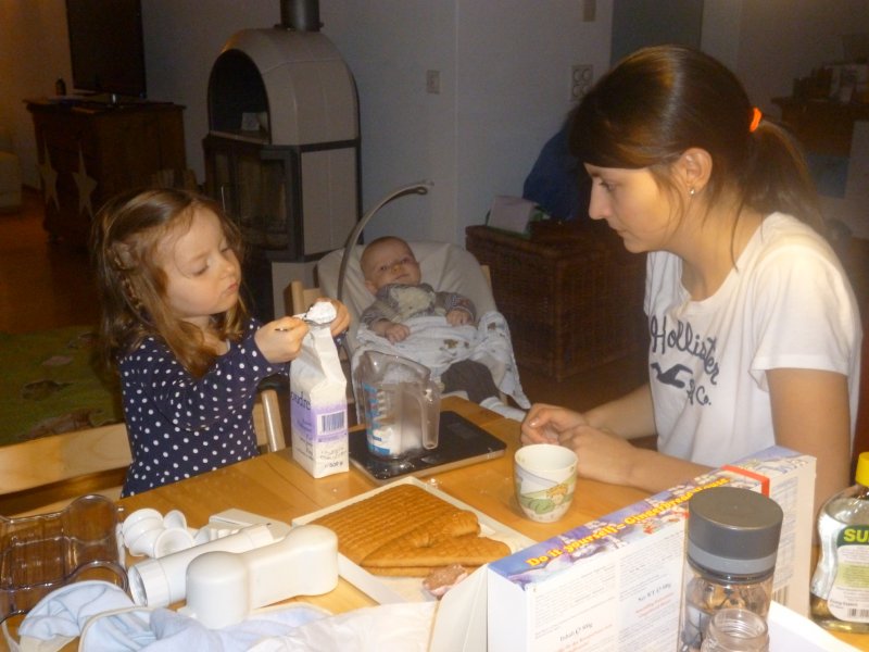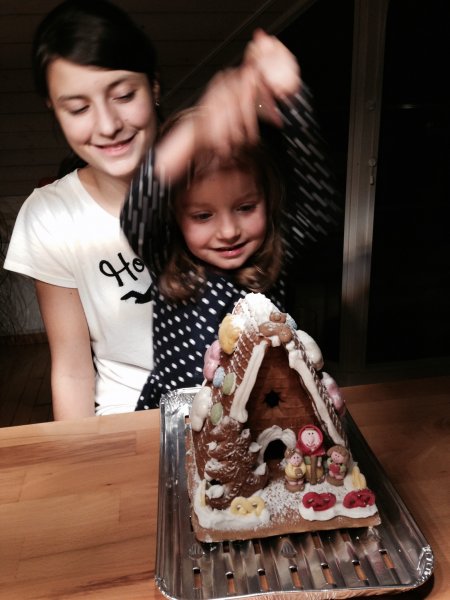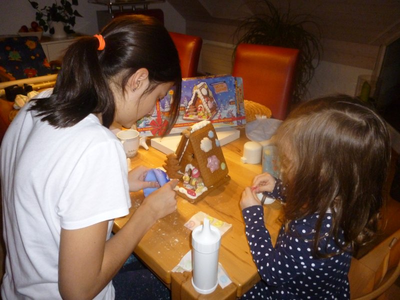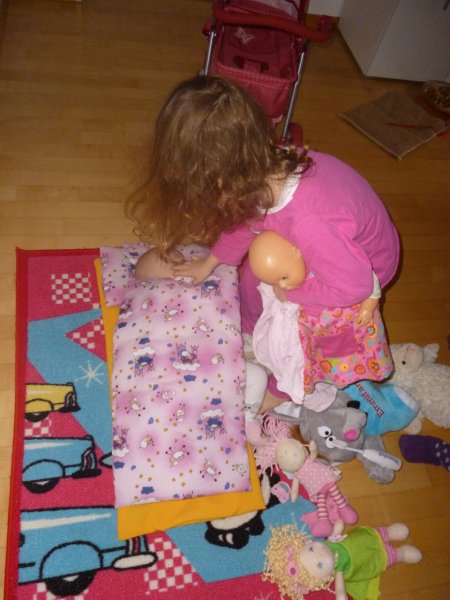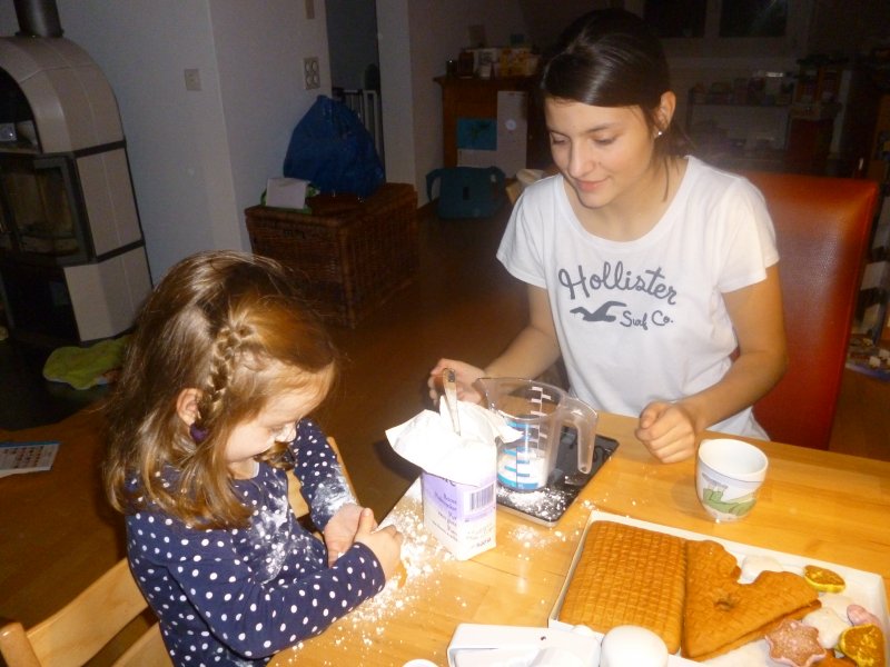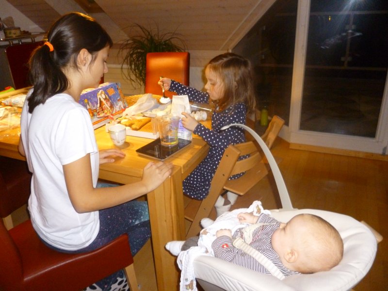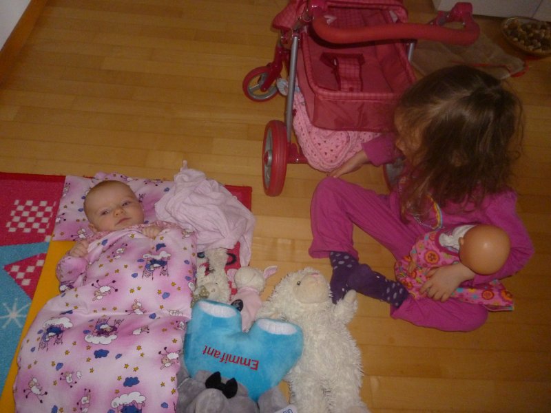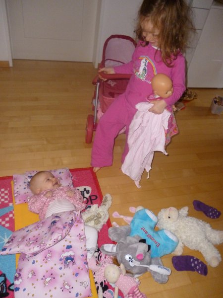 Ausserdem hat Emmi mit Hannah ein ganz tolles Lebkuchenhaus gebastelt und Janni wurde dank unserer Grossen heute Morgen ins Puppenbett gelegt. Echt süss die beiden – oder die drei, wenn man “Paulini” dazuzählt ![]()