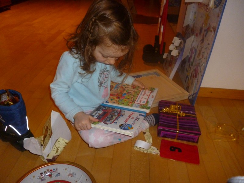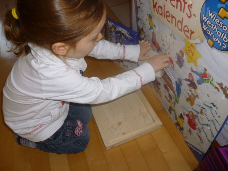 Emmi freut sich nun jeden Tag über ihre Adventskalender – und zeigt uns, wie toll sie bereits Zahlen lesen kann.