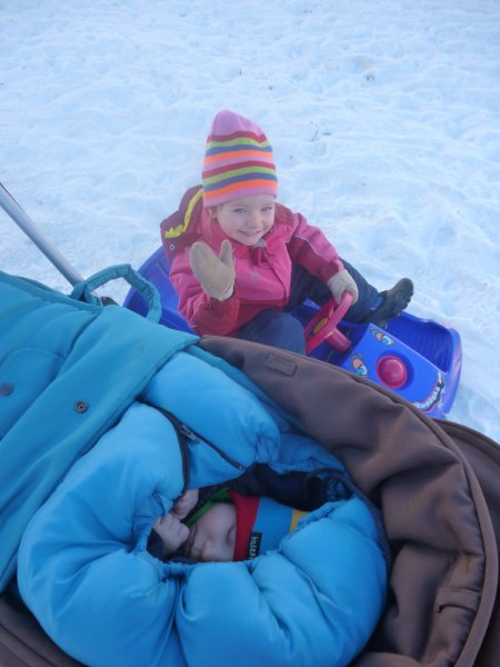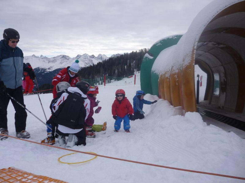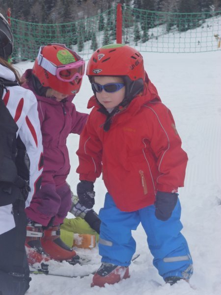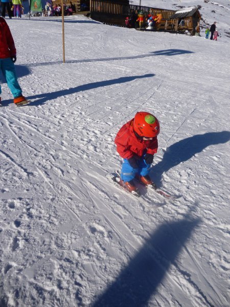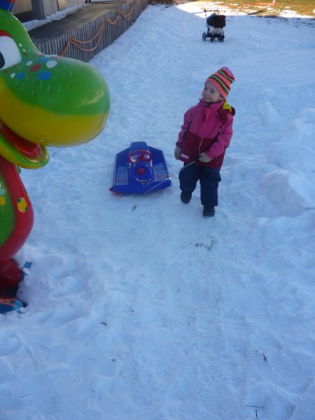 Schi foan – oder besser “rutschen”. Wir sind stolz auf unsere Meister-Schifahrerin Emmi. Sie hat eine riesige Freude und möchte nicht mehr nur einen halben Tag, sondern lieber einen ganzen Tag in die Schischule. Vor und nach der Schischule hat sie immer noch grosse Freude am Spielen und Rutschen mit Lena, Marc und Papa.