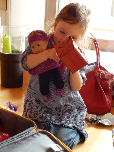 Oma Mala kam zu Besuch und hat einen ganzen Koffer voller Geschenke gebracht – Emmi hat`s riesig gefreut (in vielerlei Hinsicht).