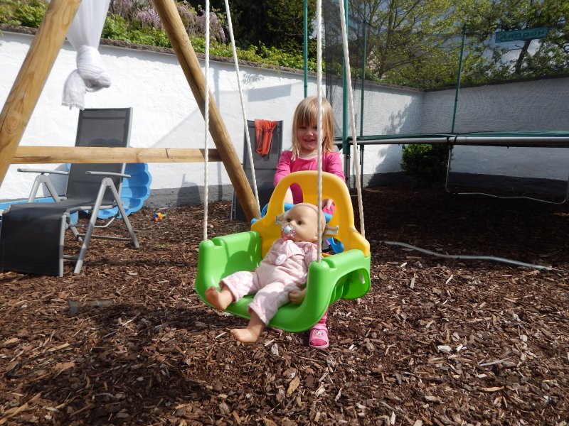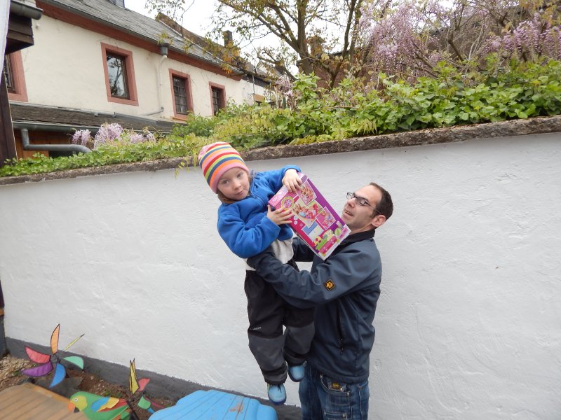 In Trier war`s dann sehr spielintensiv. Emmi hat jedenfalls bei Oma Monika gefordert, dass Mama & Papa öfter mit ihr dort hin fahren. Und bei uns hat sie reklamiert, dass wir nun immer in den Eifelpark in Gondorf gehen müssen, wenn wir bei der Godi sind. Hmm, und Johanna? Die erkundet die Welt. Ruhig, lustig und ausgeglichen – zumindest solange Mama oder Papa in der Nähe ist.
