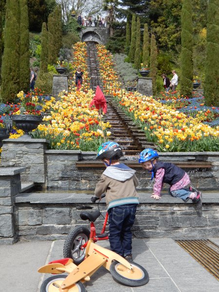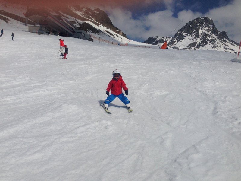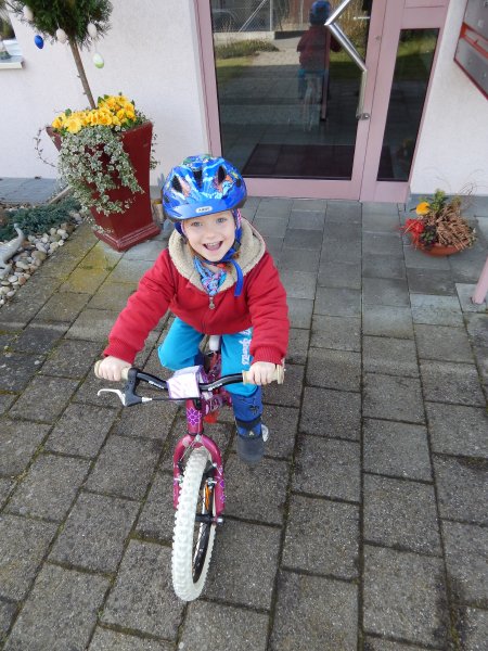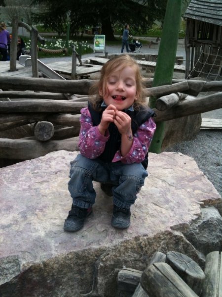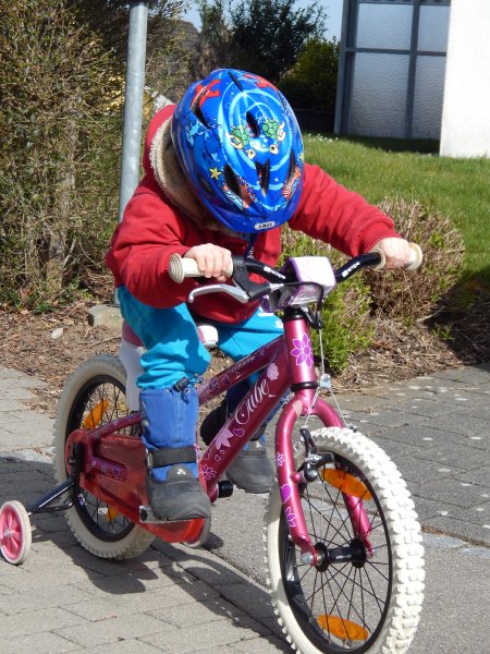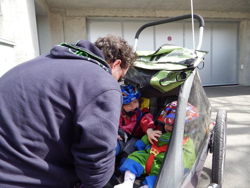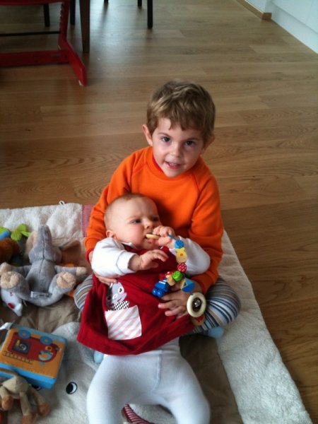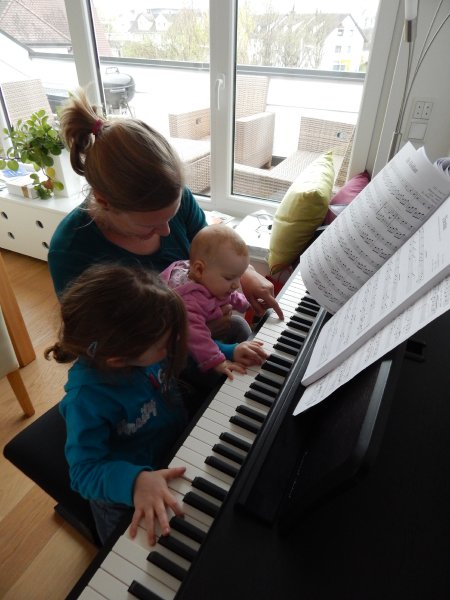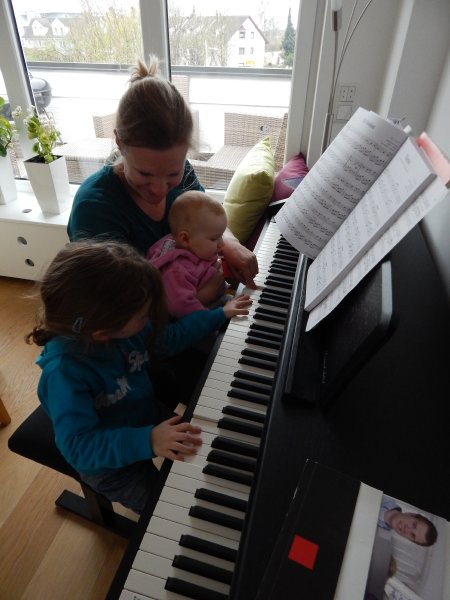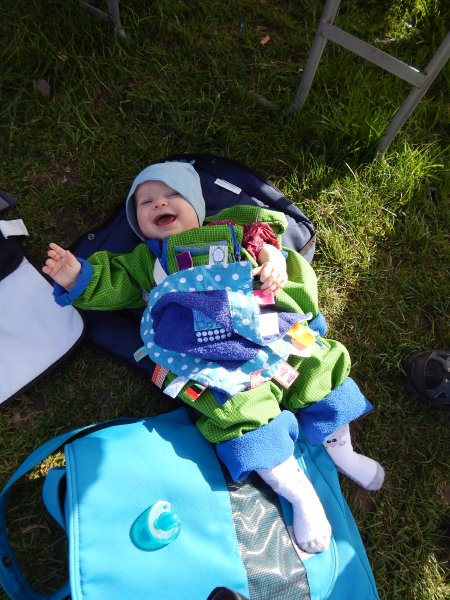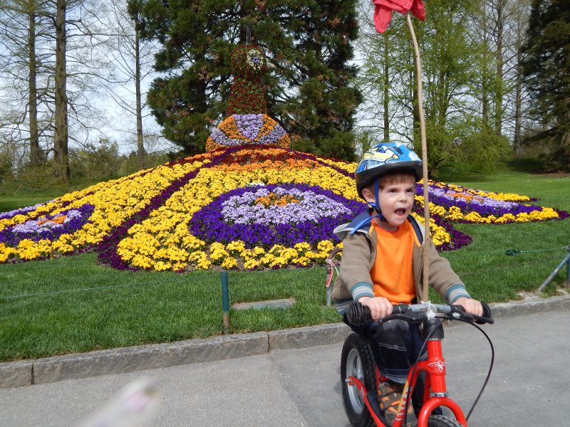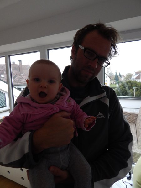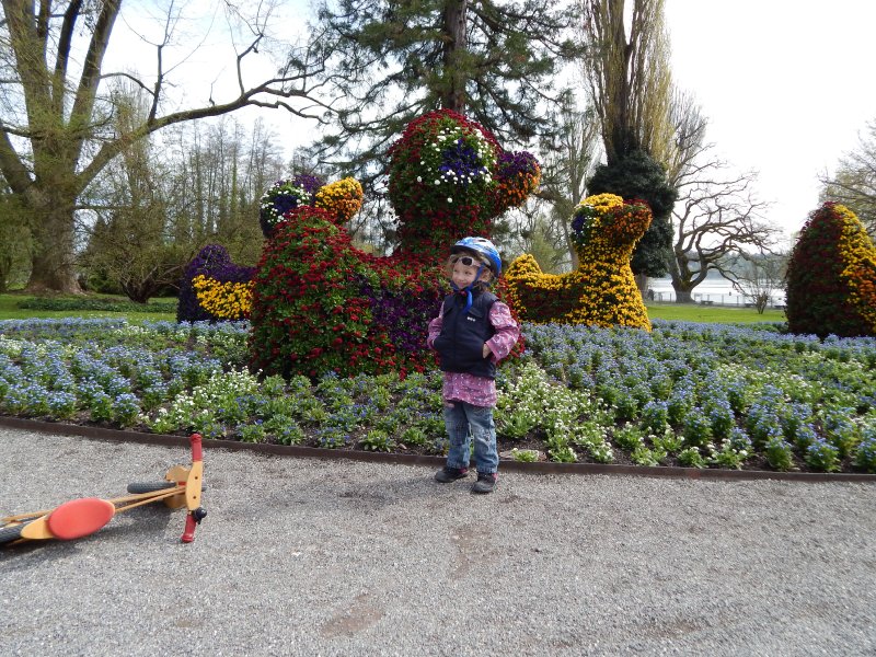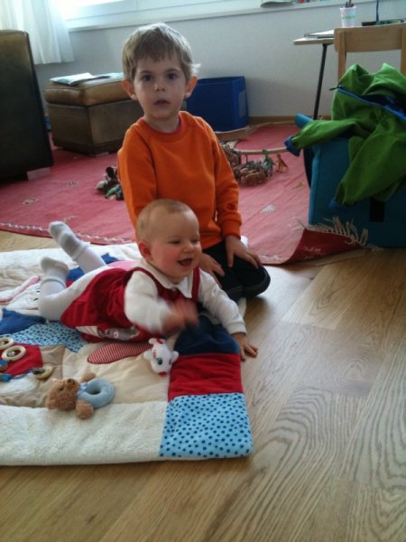 … Velo fahren, Velo Anhänger fahren, Sandeln auf dem Spielplatz, Klavierspielen mit Lena, Skifahren mit Marc, Drehen um 90% (mit Blumen futtern), Spielen mit Luc und Klettern auf der Mainau. Wir – oder zumindest die Kids – werden fit. Und wie bei der grossen Schwester: bei Janni darf die saure Gurke nicht fehlen.