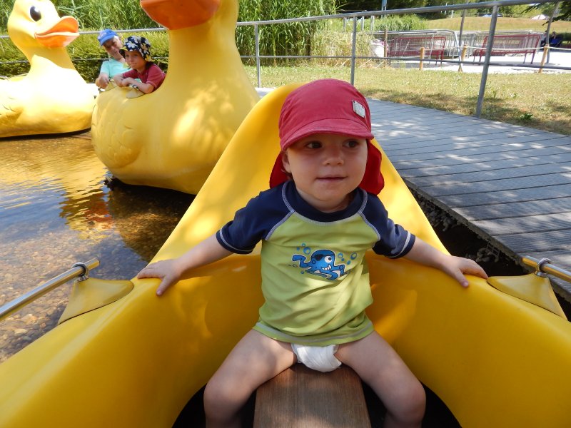 Vor meiner Schwangerschaft habe ich bereits für Emmi und mich Eintrittskarten für`s Ravensburger Spieleland gekauft. Gut war`s – sonst hätten wir wirklich etwas verpasst. Sogar Janni hatte riesigen Spass – und die liebe Spieleland-Oma war hin und weg von unseren Zuckerschnecken. Eine tolle Idee vom Spieleland.